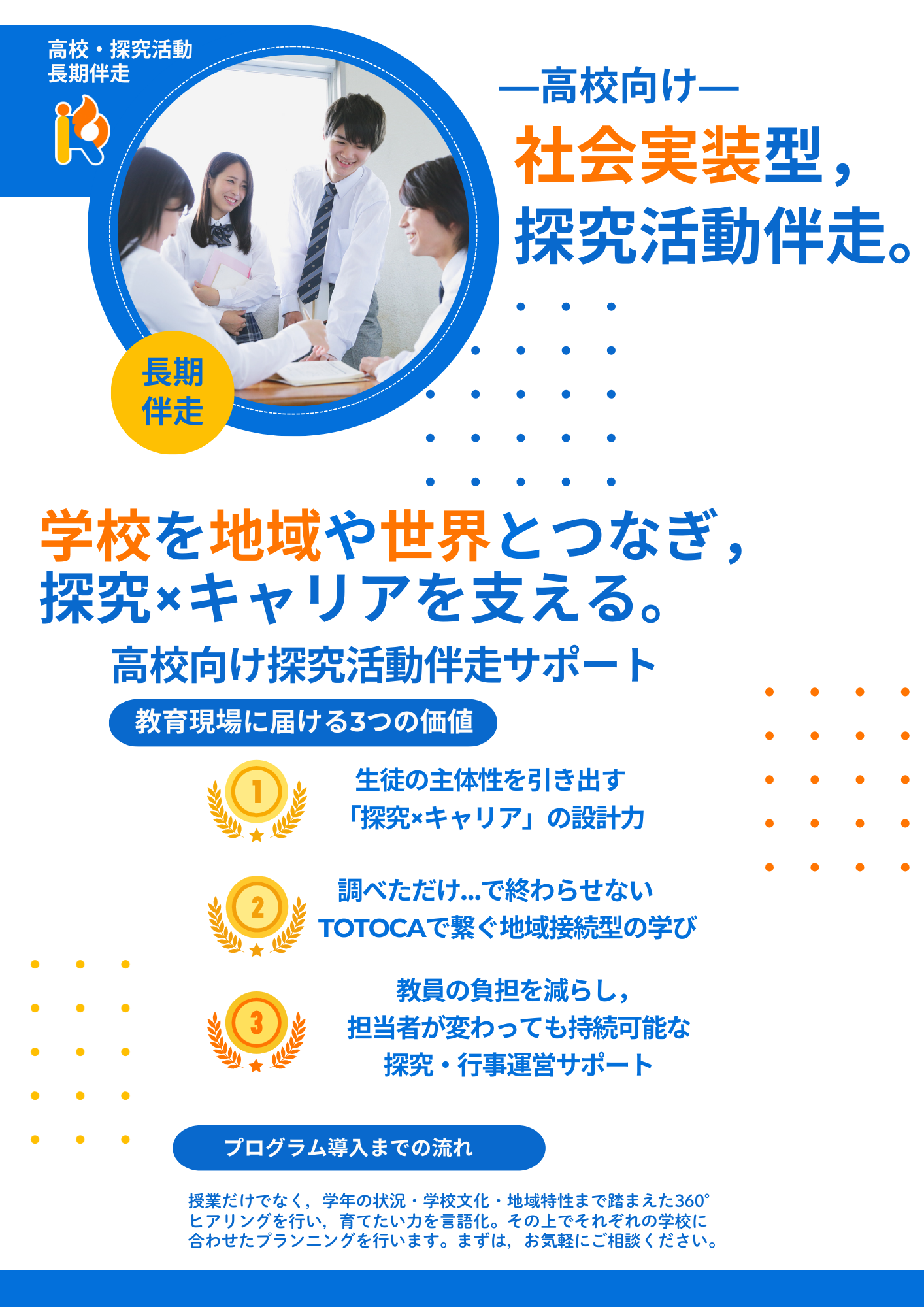 学習の流れを考えると、探究活動については半期伴走・年間での伴走をオススメしています。